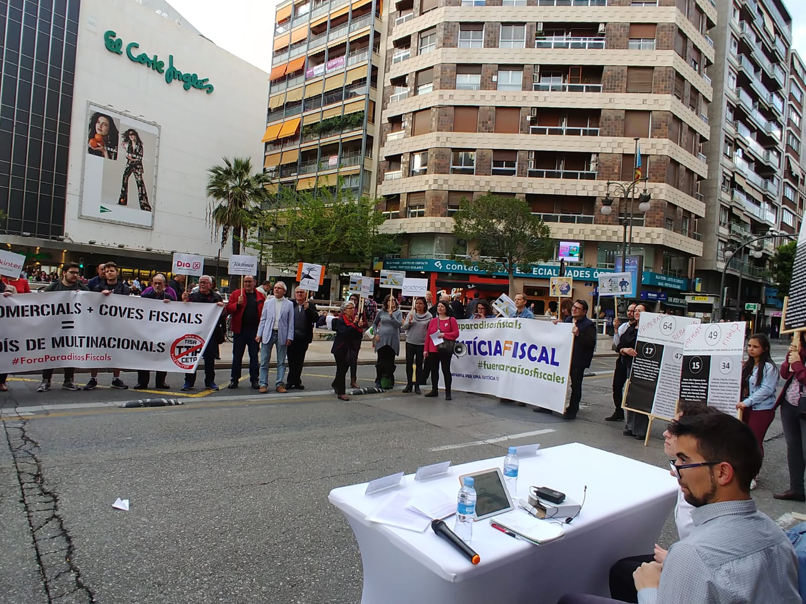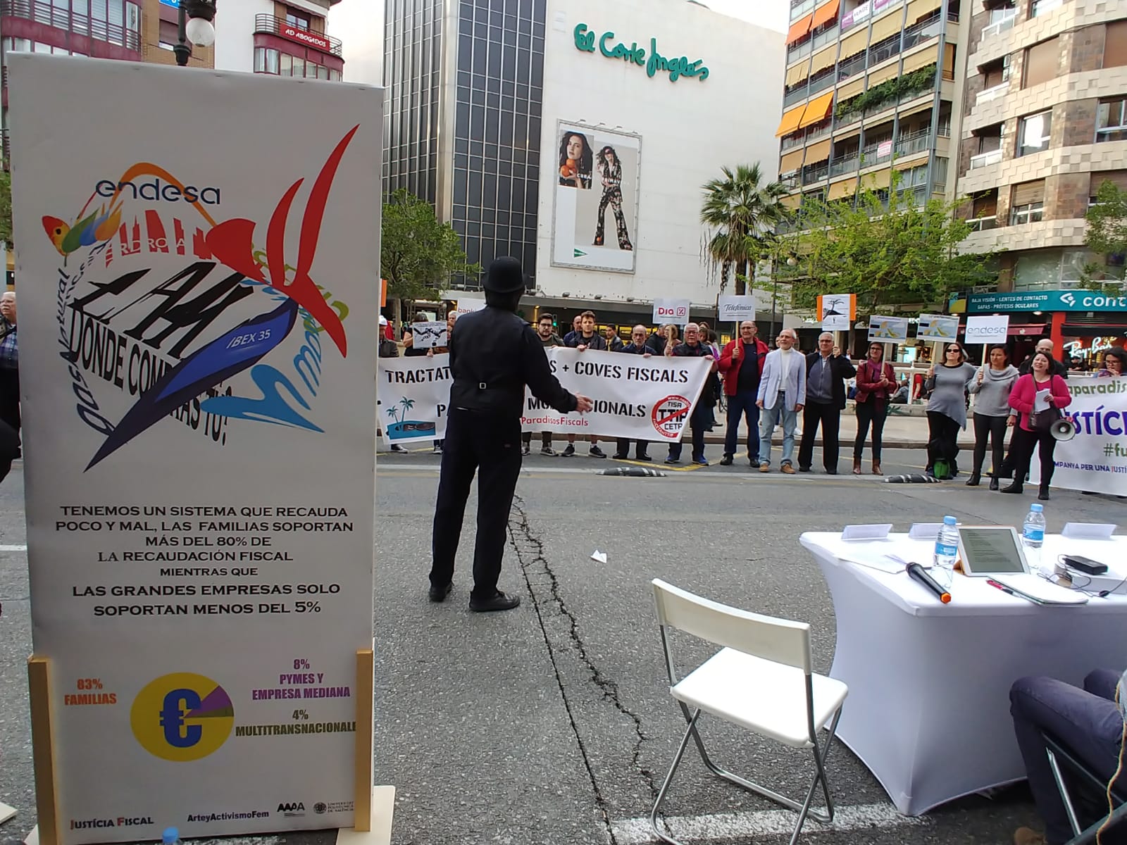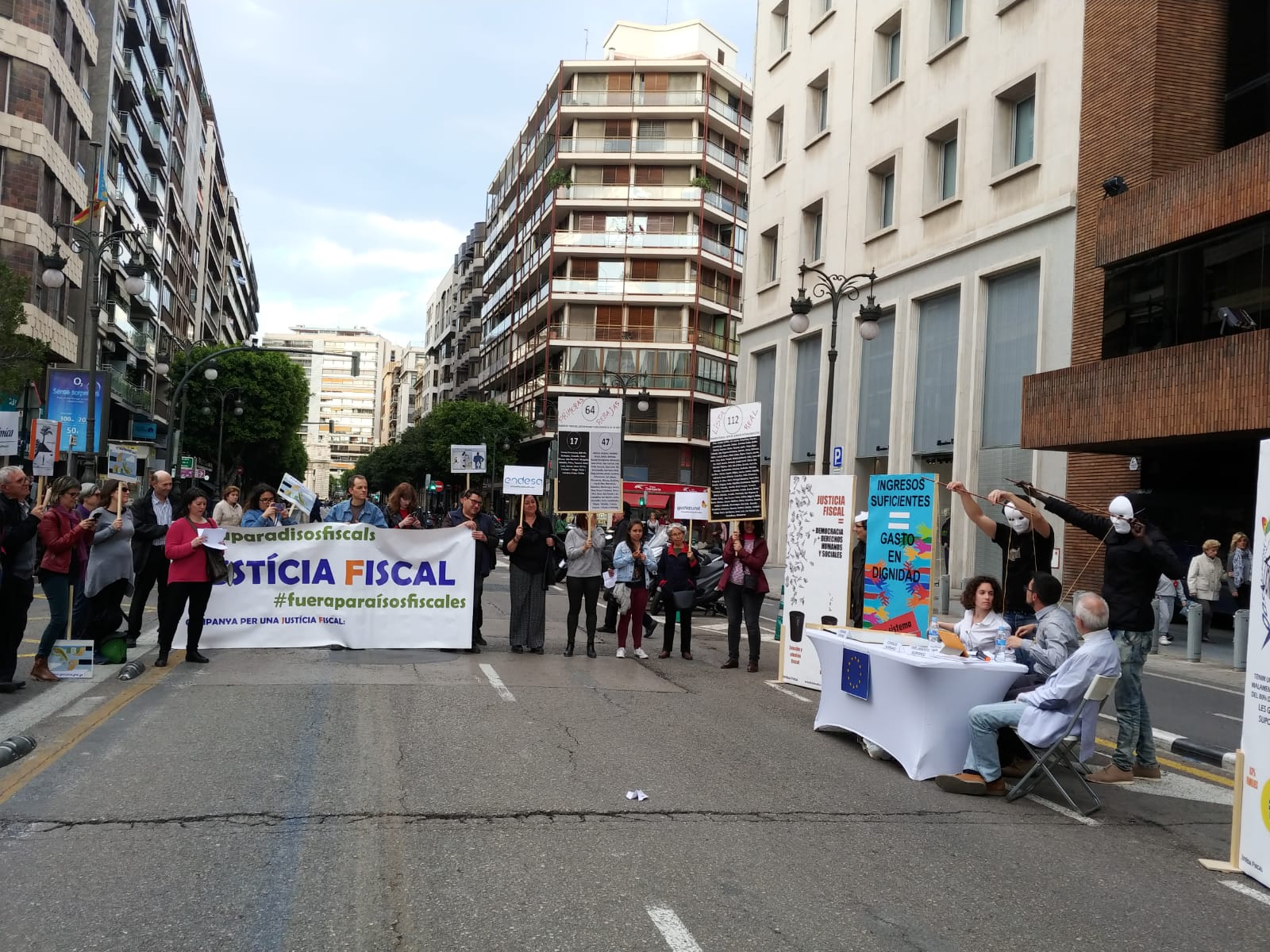 En este ocasión, la Campanya per una Justícia Fiscal y la Campaña No a los Tratados de Comercio e Inversión han organizado en València diversas actividades para informar a la ciudadanía y pedir a la administración pública tolerancia cero con la evasión y elusión fiscal, así como con los paraísos fiscales.