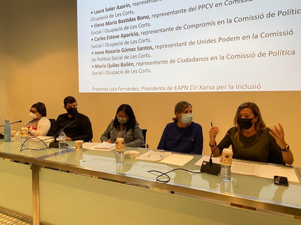 De esta forma, intervinieron en el Encuentro la Directora General d’Acció Comunitària i Barris Inclusius de la Generalitat Valenciana, María José Cortell Simón, así como el President de Les Corts Valencianes, Enric Morera i Català. También participaron los y las diputados y diputadas de los grupos parlamentarios en la Comisión de Política Social y Empleo de Les Corts Laura Soler Azorín del Partit Socialista del País Valencià, Elena Bastidas Bono del Partido Popular de la Comunidad Valenciana, Carles Esteve Aparicio de Compromís, María Quiles Bailén de Ciudadanos Comunidad Valenciana e Irene Rosario Gómez Santos de Unides Podem. En representación de la EAPN España intervino su Vicepresidenta, Lola Fernández, y en nombre de la EAPN CV su Vicepresidenta, Virginia Sanchis.